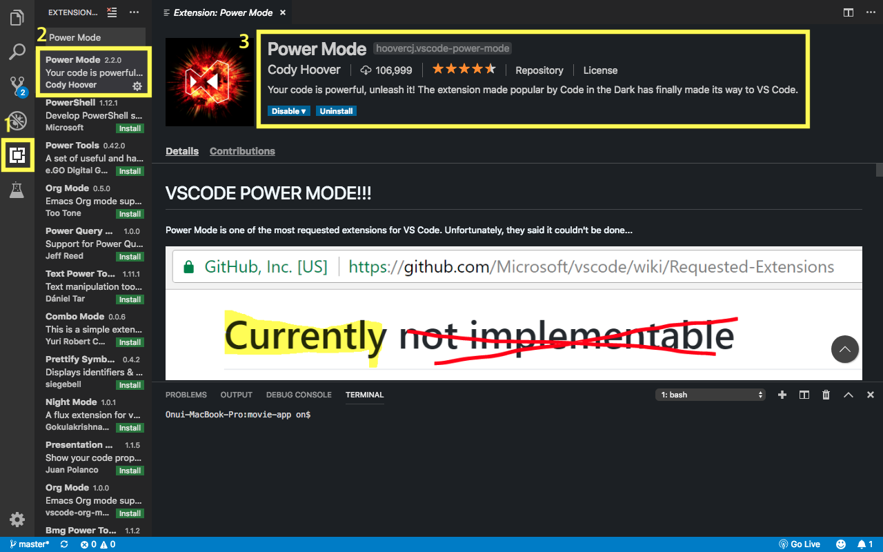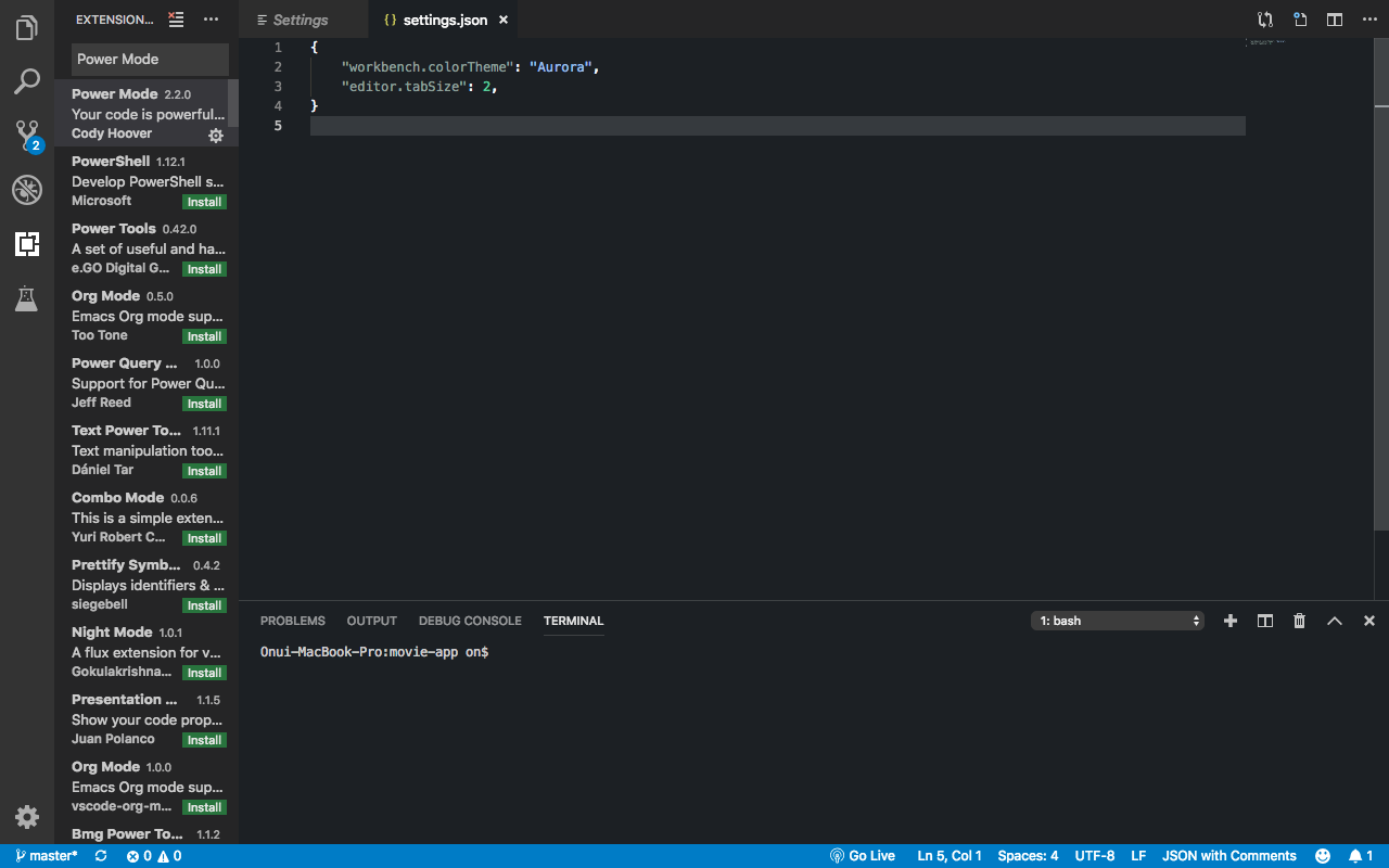 2019/05/24 - [프로그래밍/vscode] - [vscode] 코드 power mode 설치, 설정법 + 사용자 설정