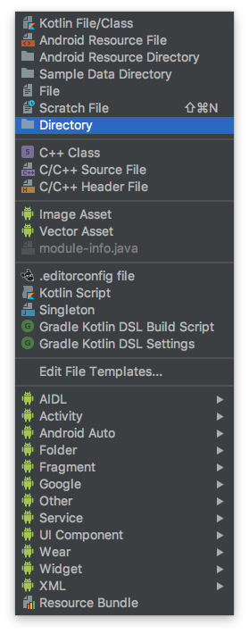 res에 오른쪽 버튼 클릭 → New → Directory 버튼을 클릭해주세요.
