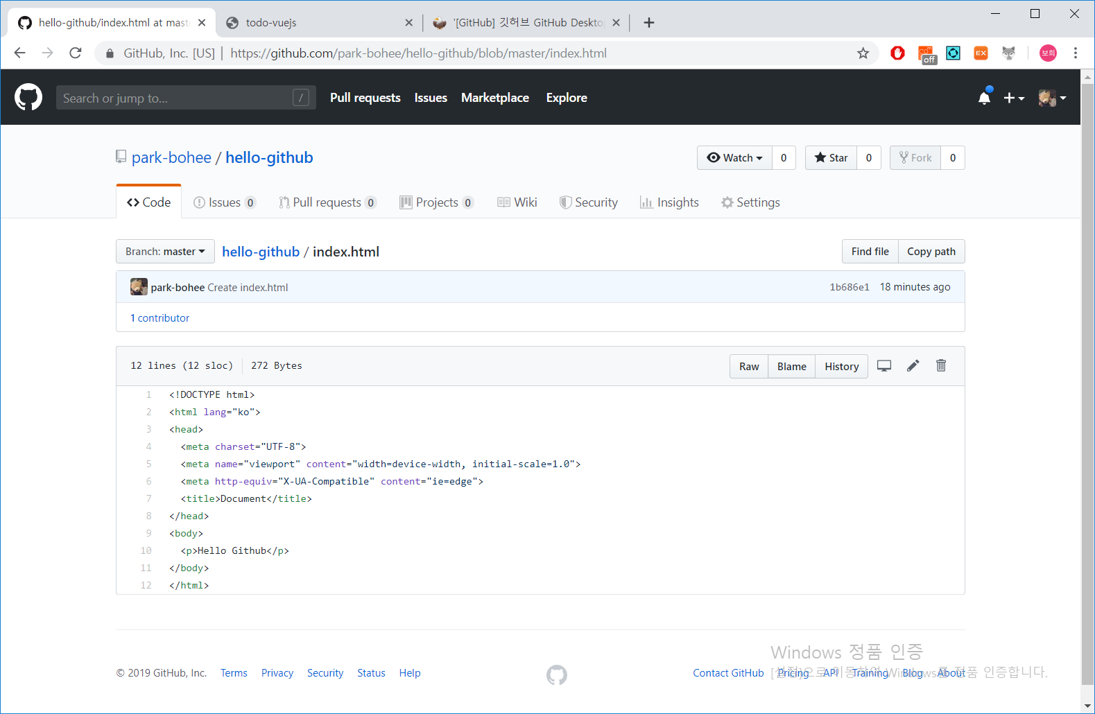 github desktop을 확인해보시면 index.html 파일이 새로 올라온 것을 확인해보실 수 있습니다.