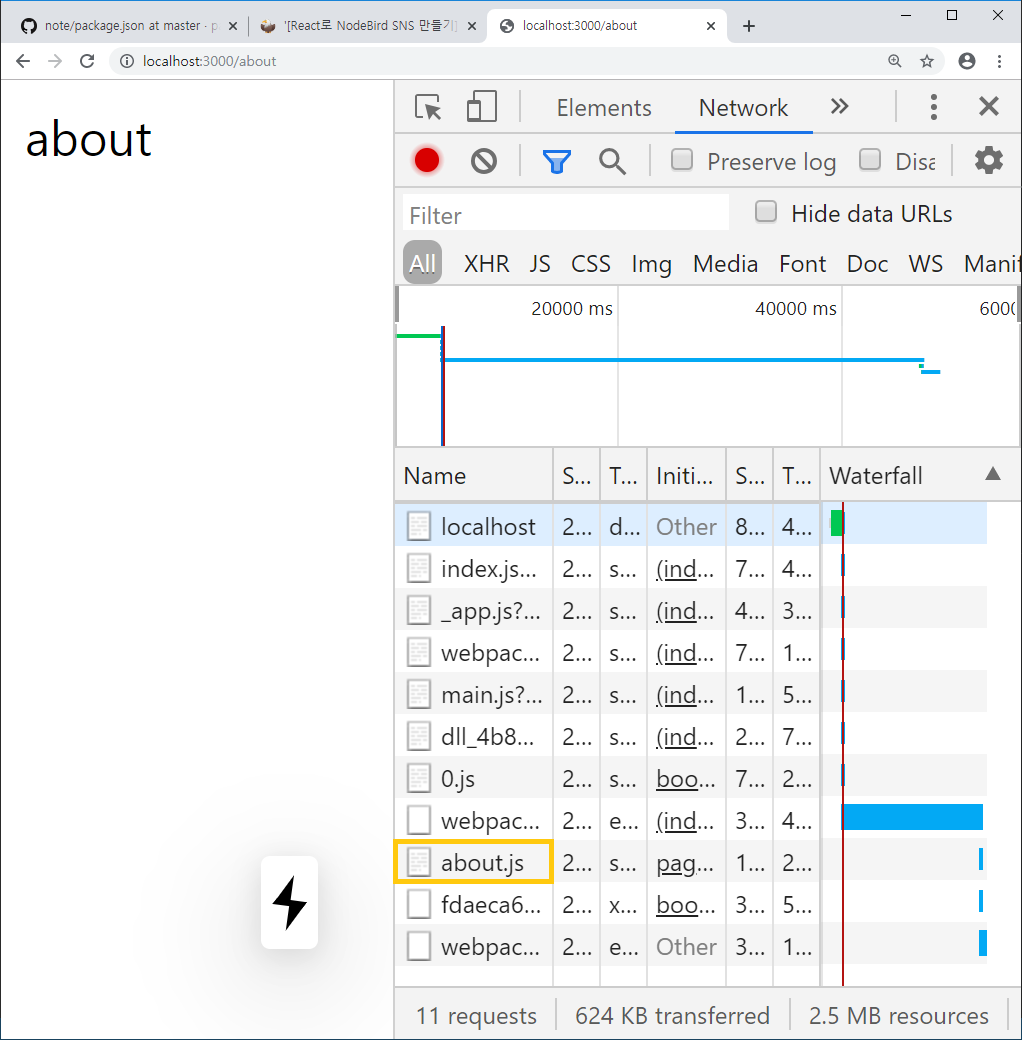 about 페이지에 접속했을 때 about.js를 불러온다.